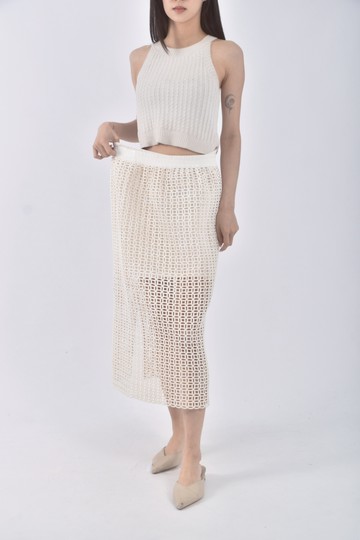 (S) 【晏寧私服】fashion質感針織開衩棕色長裙