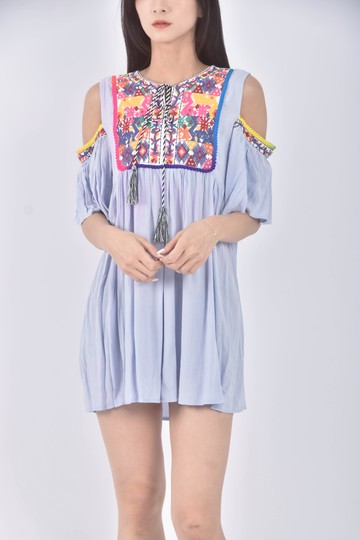 Marchen 長洋裝 - 淺藍色綴霓虹刺繡