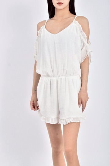 (S) amisu高腰質感細肩帶挖肩白色連身裝