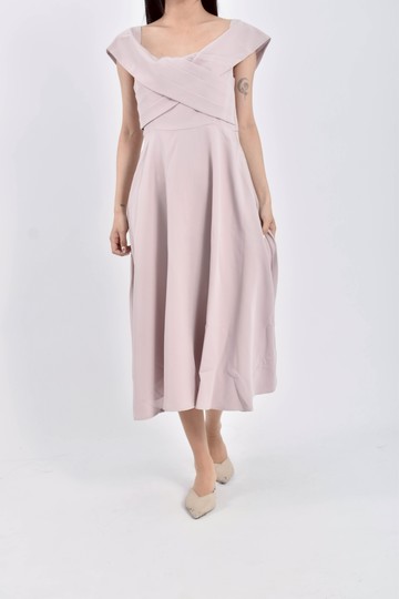 法式 淡粉色千金緞面收腰連衣裙無袖花苞裙