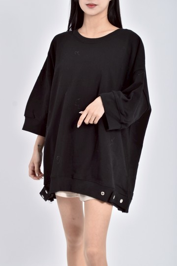 (L) simplicite質感落肩黑色長袖上衣