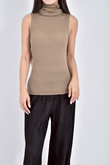 (S) jamei chen質感羊毛純羊毛高領螺紋棕色上衣