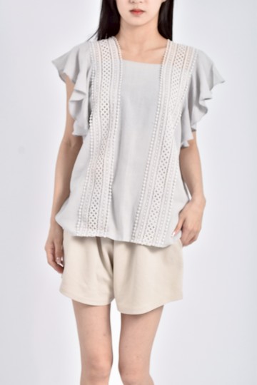 活褶半透明。水藍棉麻背心。春夏 | Ysanne