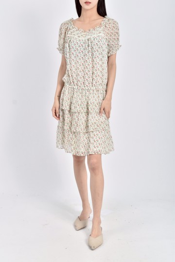 綠荷微風碎花雪紡層次裙