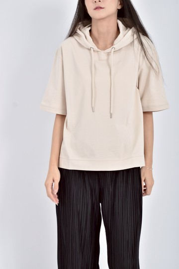 (L) bayflow質感棉質純棉連帽杏色短袖上衣