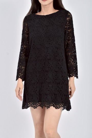 (S) l a c e質感雪紡收腰黑色洋裝