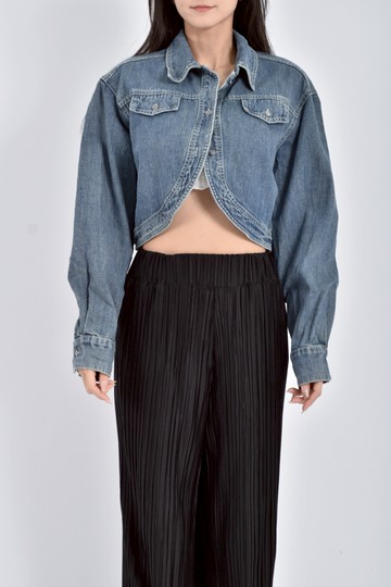 (M) fancy eva質感丹寧牛仔棉質長袖修身短版藍色外套