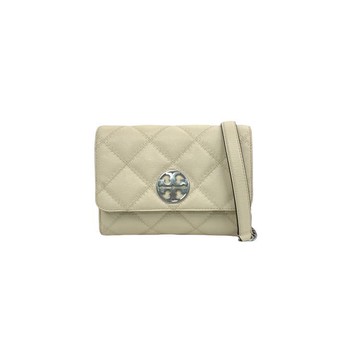 TORY BURCH 專櫃款 T MONOGRAM 壓花皮革手提/斜背小方包-泥灰