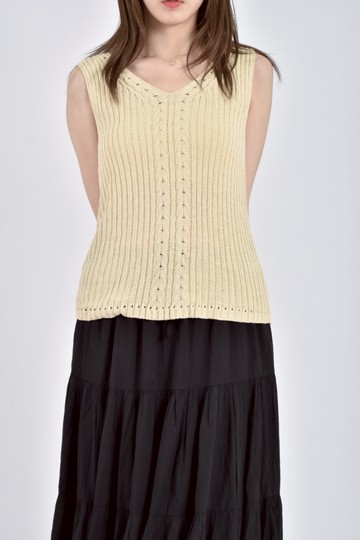 【NaSuBi Vintage】荷葉綴飾針織古著罩衫