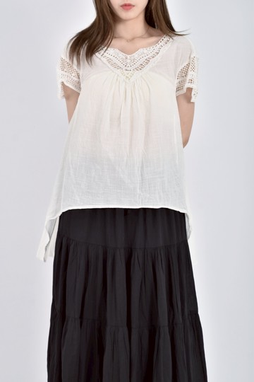 (L) 蕾絲白色短袖上衣