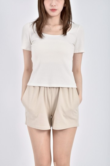 (S) 修身短版圓領素面白色短袖上衣