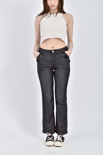 (L) keraia jeans丹寧牛仔珠珠低腰黑色長褲