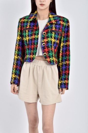 (S) laicarfore修身短版羊毛多色多彩滿版黑色外套