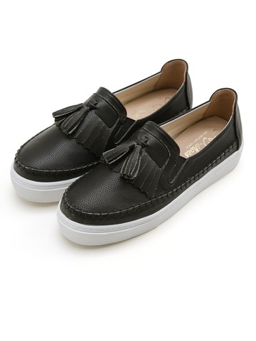 FM SHOES 流蘇縫線厚底小白鞋 黑