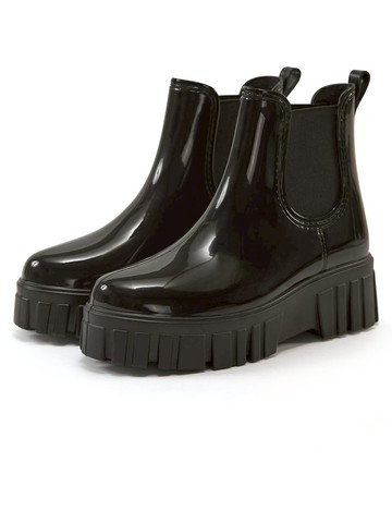 NEUTRAL 亮面厚底切爾西短雨靴 黑