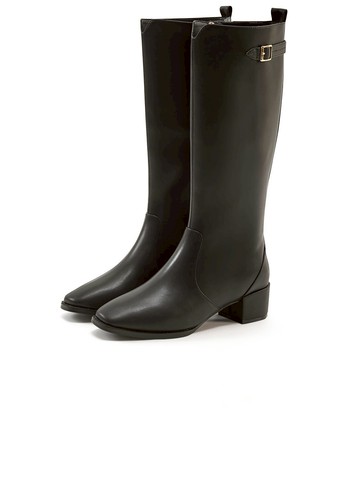 amai 簡約百搭顯瘦低跟長靴 高筒靴 長靴 騎士靴 低跟 長筒靴 大筒圍 加大筒圍 大尺碼 黑色 GB625PSBK
