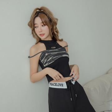 (XS(含)以下) 【凱欣私服】hava棉質無袖綁帶灰色上衣