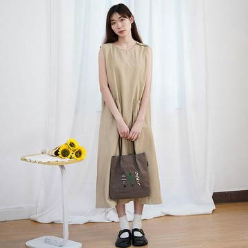 MOCO韓版chic法式無袖腰抽繩水洗棉背心裙收腰氣質花苞背心洋裝