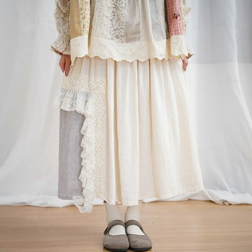 百搭寬鬆花邊壓褶半身裙746696