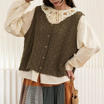 下襬雙綁帶造型縷空針織排釦罩衫(FF42L2D0480) - ehka sopo