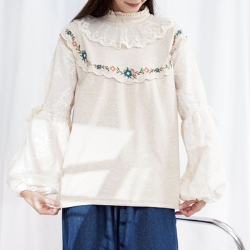 刺繡蕾絲 泡芙袖拼接設計上衣844922