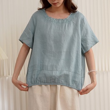 蕾絲領口亞麻上衣487477