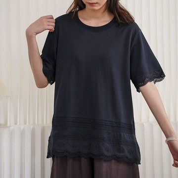 下擺蕾絲鏤空圓領上衣121387C
