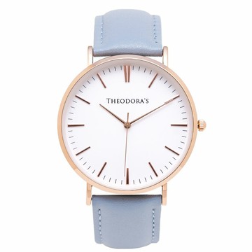 Hera簡約中性款真皮腕錶 蛋殼白面-真皮灰藍
