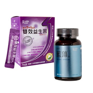 點我下載【專注唯一】Double Power原粹藍藻錠(300錠/瓶)X2瓶+專利7+1雙效益生菌(60包/盒)X2盒
