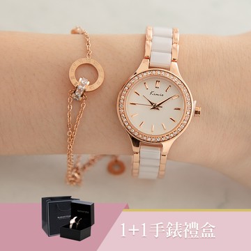 RAINBOW TIME 浪漫假期陶瓷時尚腕錶-玫瑰金X粉