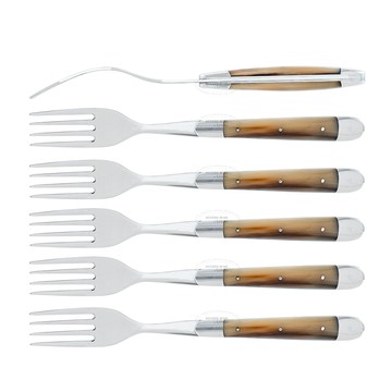 FORGE DE LAGUIOLE | 白牛角握柄6件餐具禮盒組 (亮面)