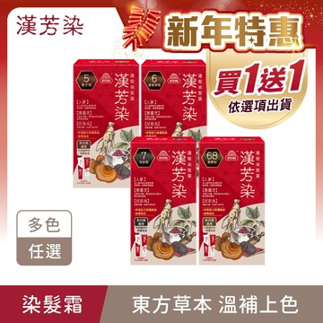 買1送1任選【漢芳染】遮白護髮染髮霜(40g+40g)/盒 多色任選 (1/16 11:00-2/12 10:59買1送1任選(依照選項出貨2瓶),此優惠僅限活動時間內成立之訂單) (何首烏染髮/灰白髮適用/遮蓋白髮/永久性染髮/人蔘/黑靈芝)|美吾髮『可海外配送』
