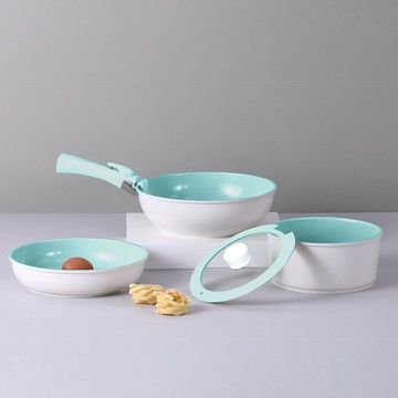NEOFLAM VULCAN白火山系列鑄造鍋具3件組(不挑爐具) - 雙耳湯鍋+單柄湯鍋+平底鍋