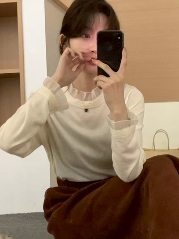 拼接蕾絲針織上衣