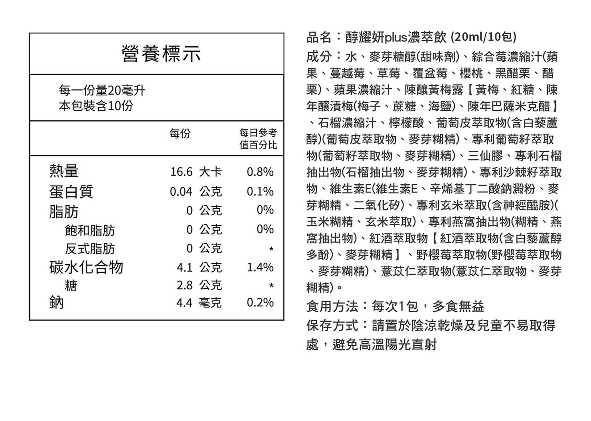 DV-醇耀妍PLUS濃萃飲20ML/100包/盒