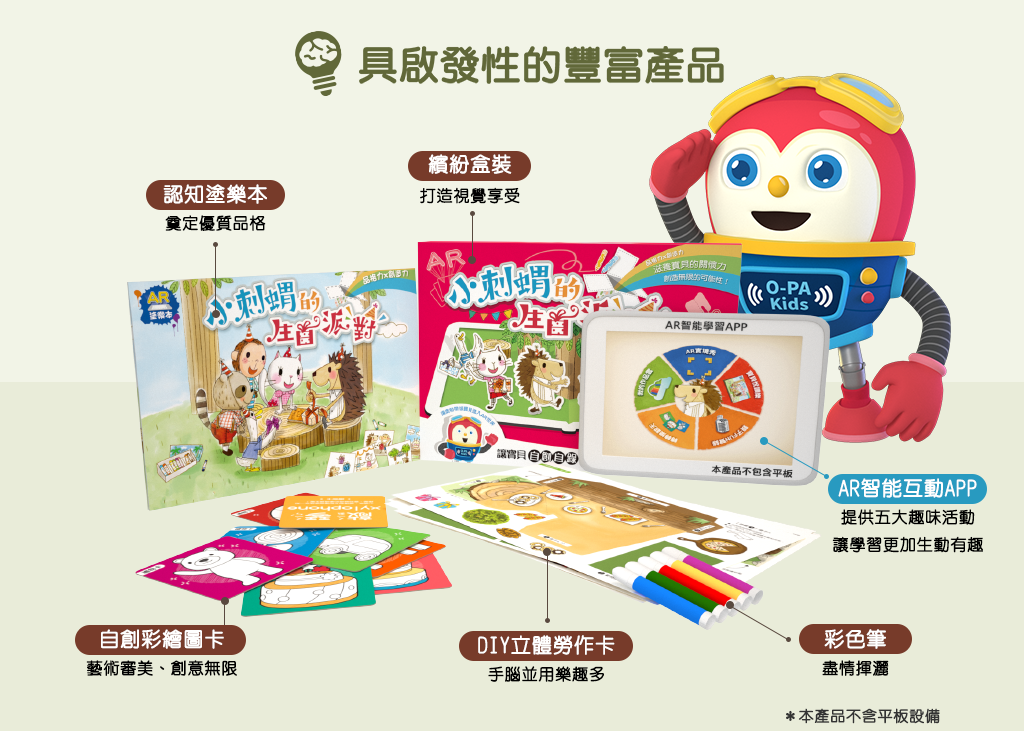 AR智能學習盒【小刺蝟的生日派對】親子共讀共玩的著色故事繪本✚3D圖卡遊戲✚擴增實境APP,用STE