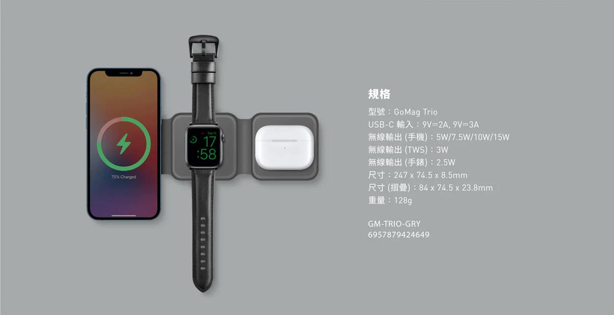 Mag Z 折疊式三合一旅行磁吸無線充電座