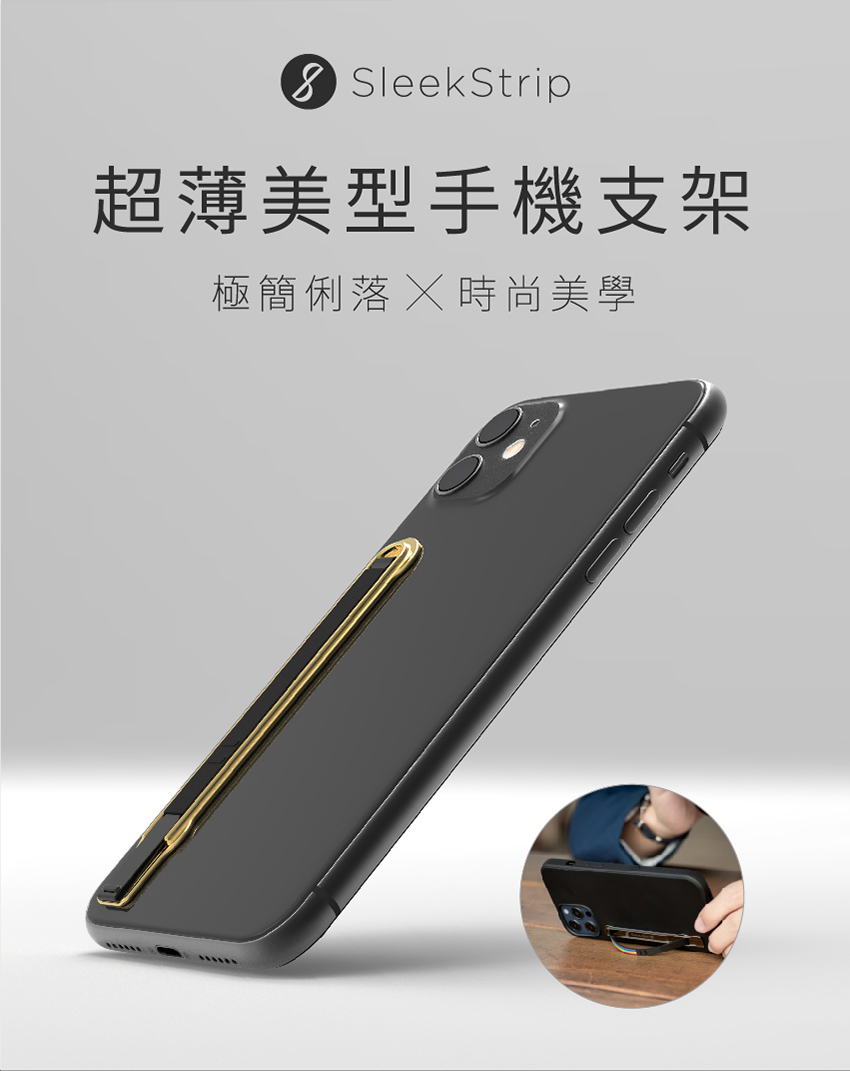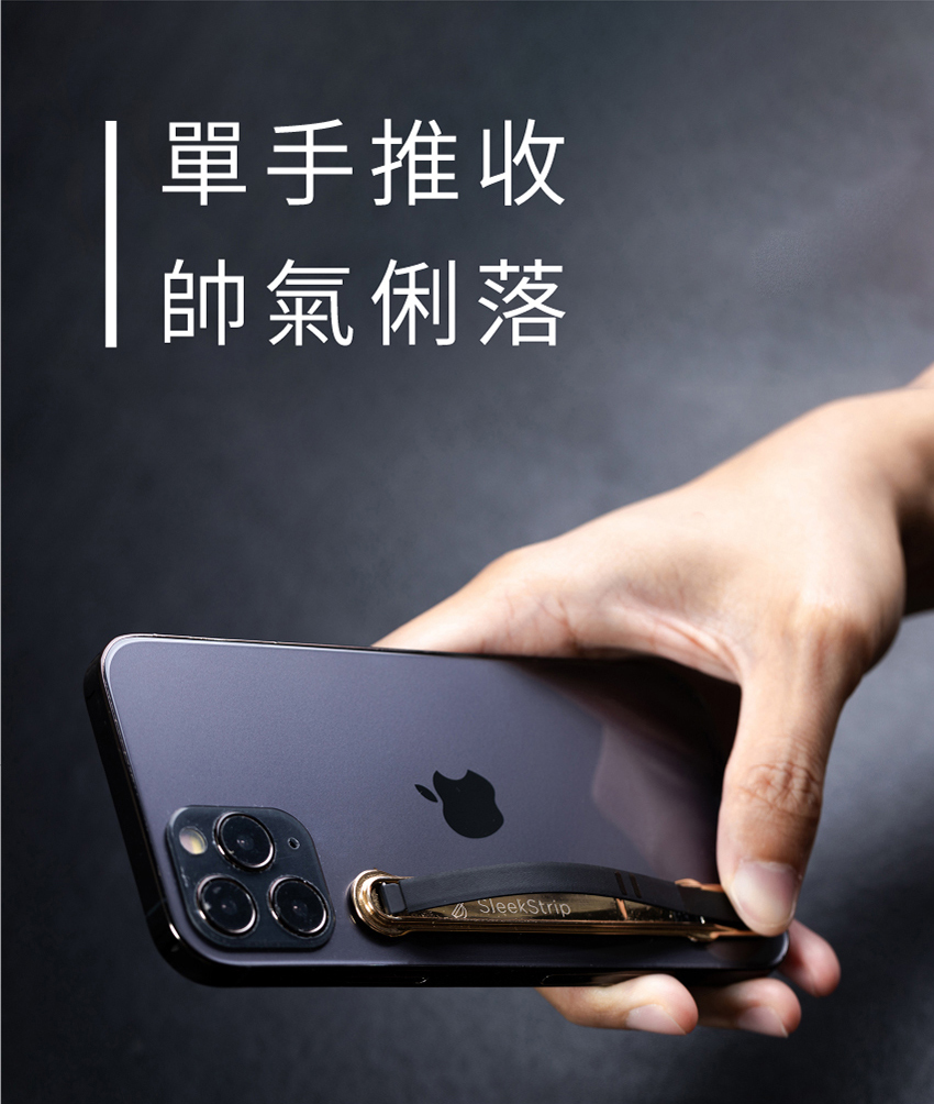 SleekStrip 犀利釦握帶支架-經典款-金框x皮革冪黑