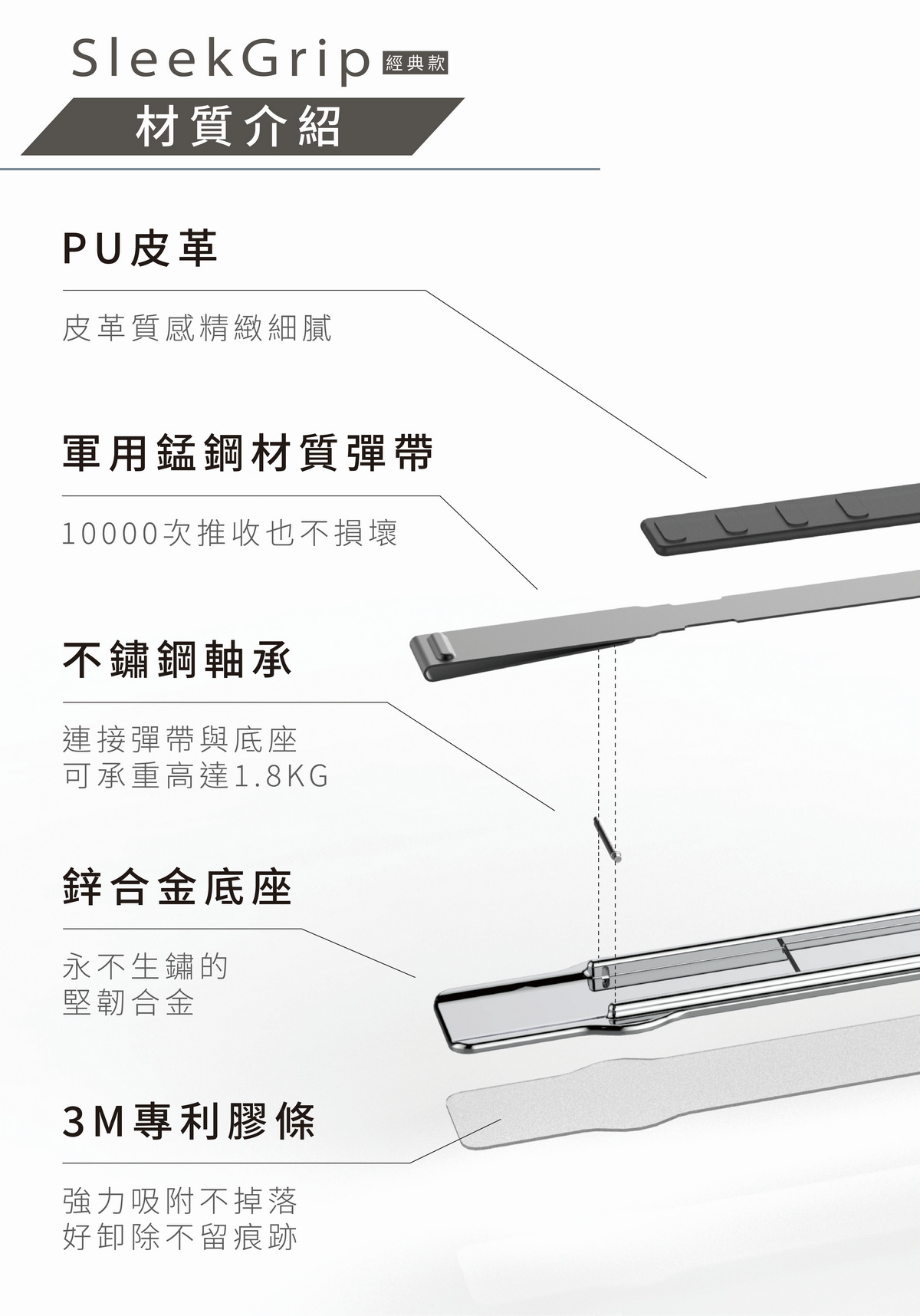 FlexiMag 輕薄秒收放磁吸手機支架 強磁吸力/多角度調整/橫豎可放(附引磁環)
