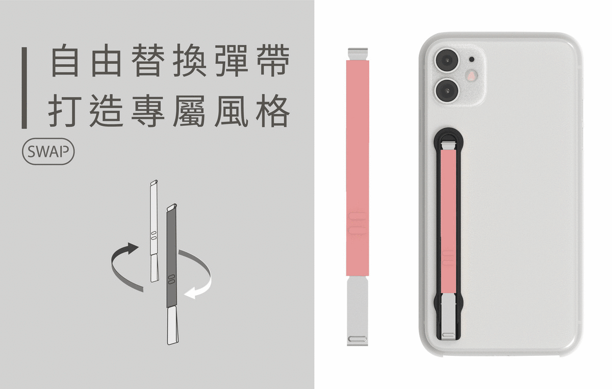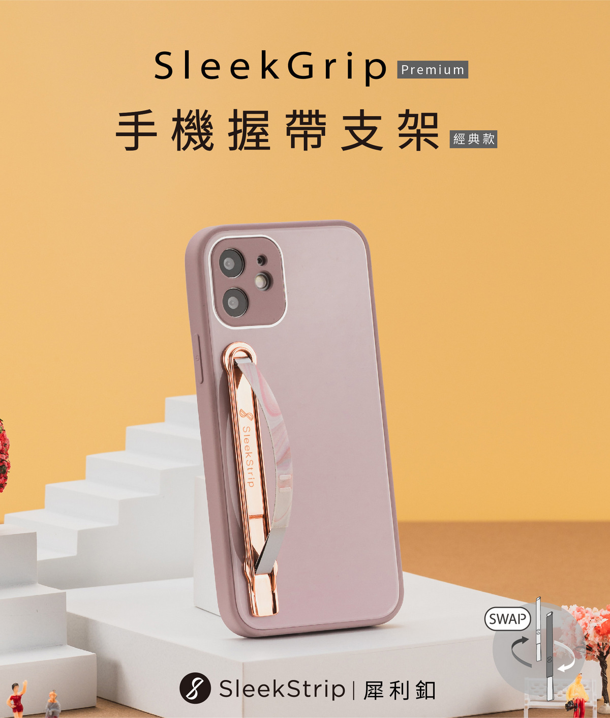 SleekStrip 犀利釦握帶支架-經典款-玫瑰金框x粉漾大理石