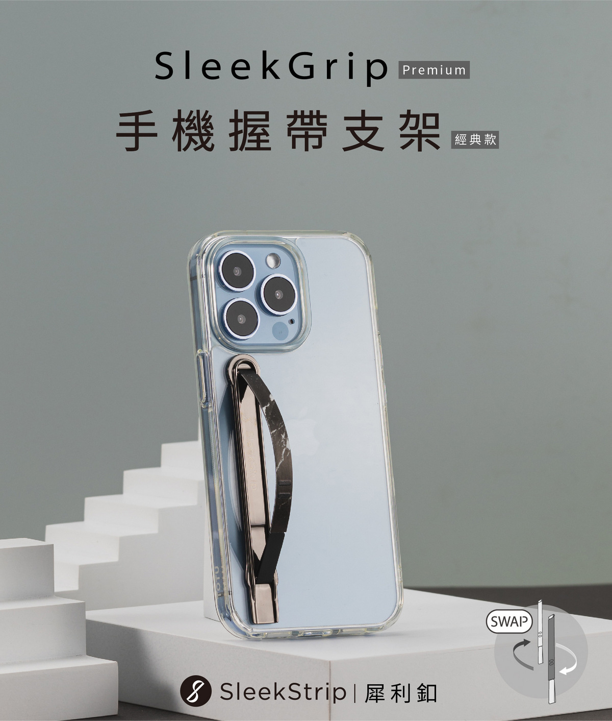 SleekStrip 犀利釦握帶支架-輕量款-黑底座x月影石灰