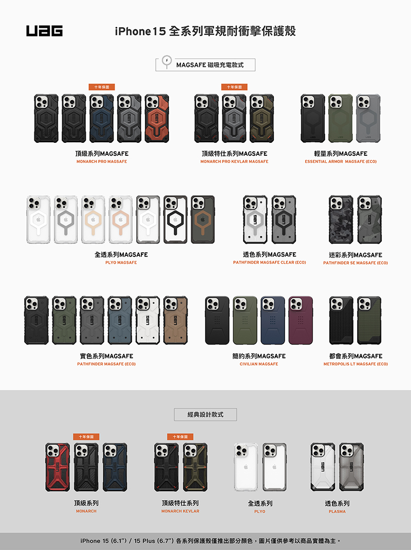 UAG iPhone 15 系列 (適用6.1/6.7吋) 耐衝擊保護殼-透色款