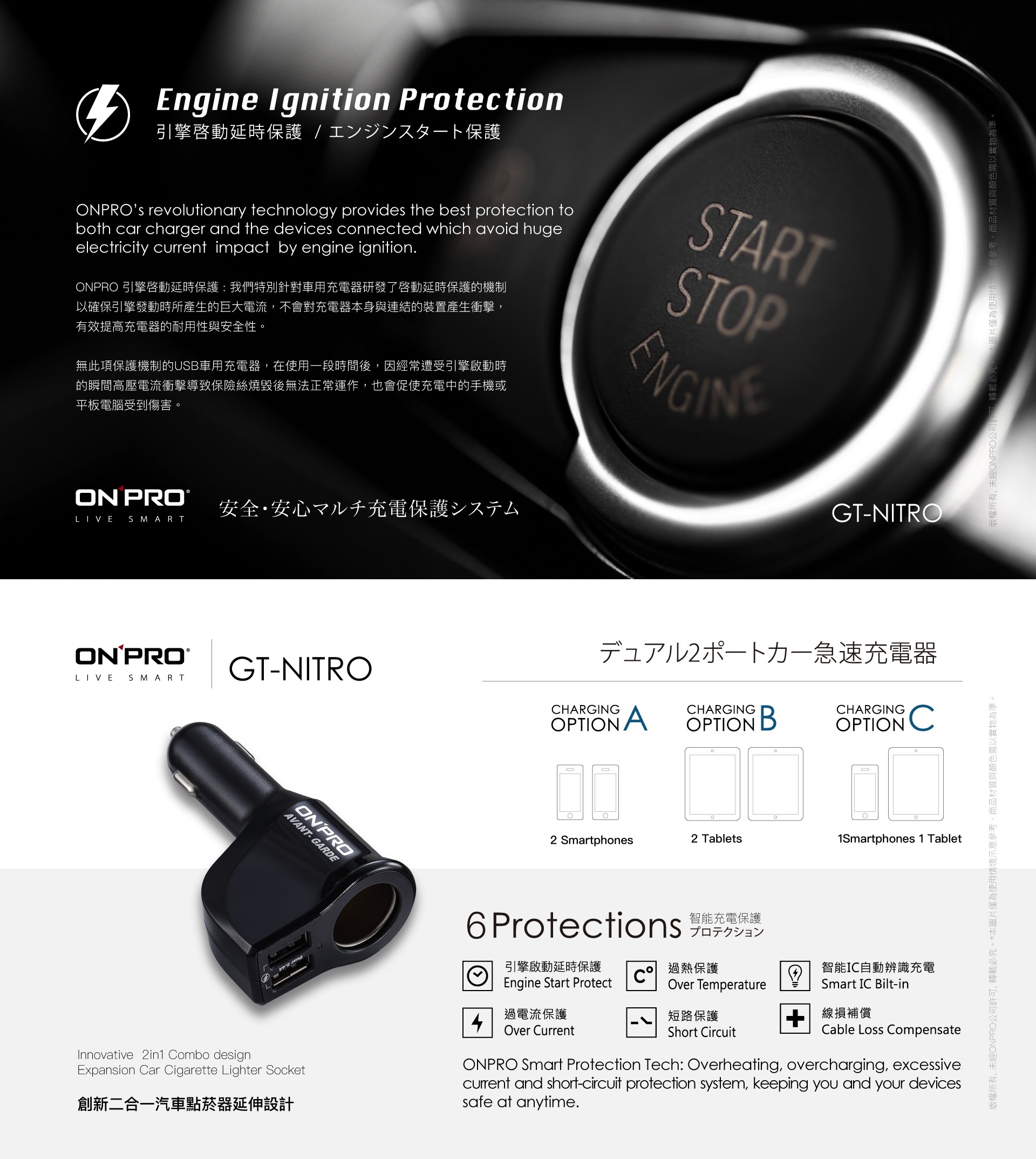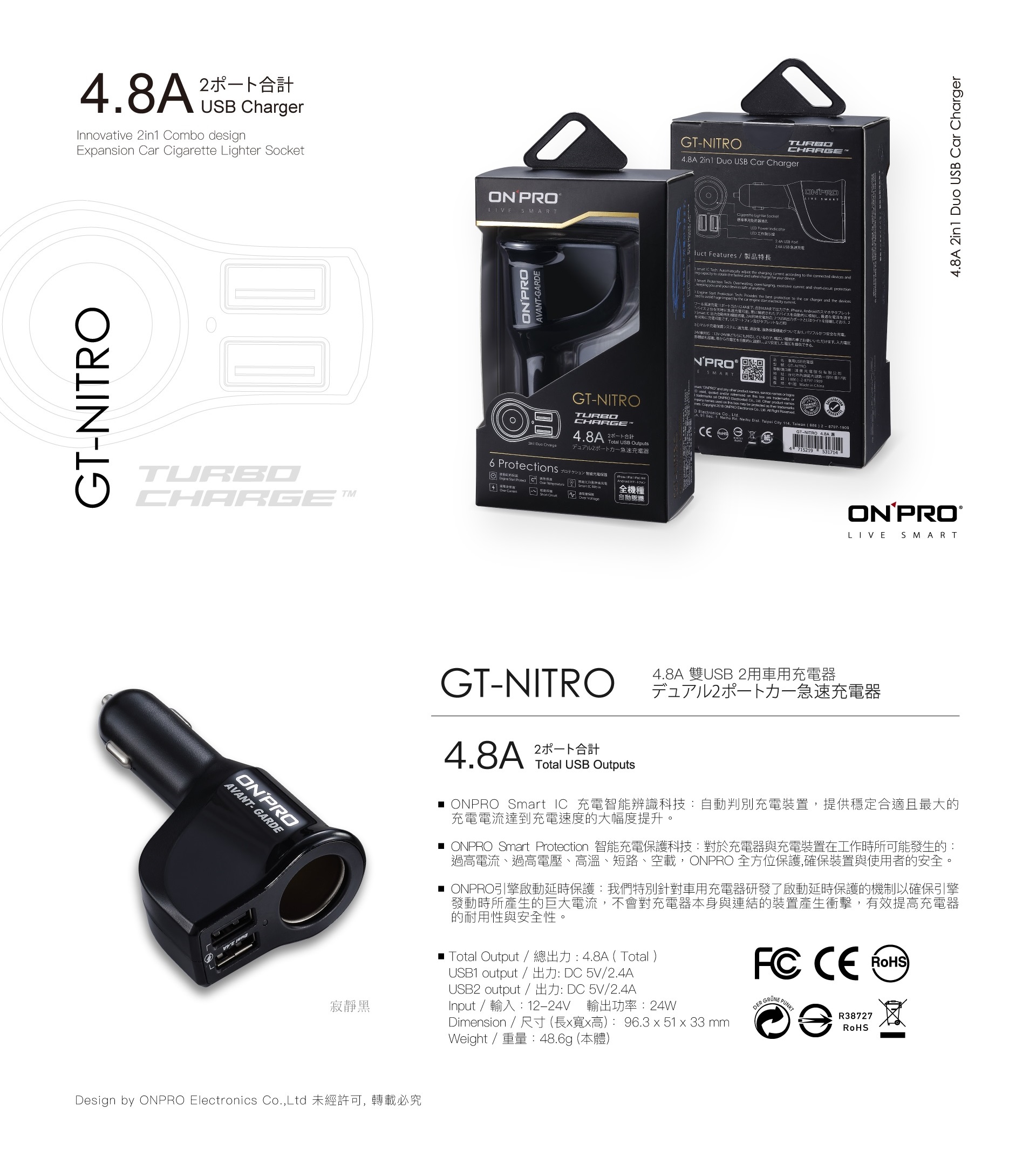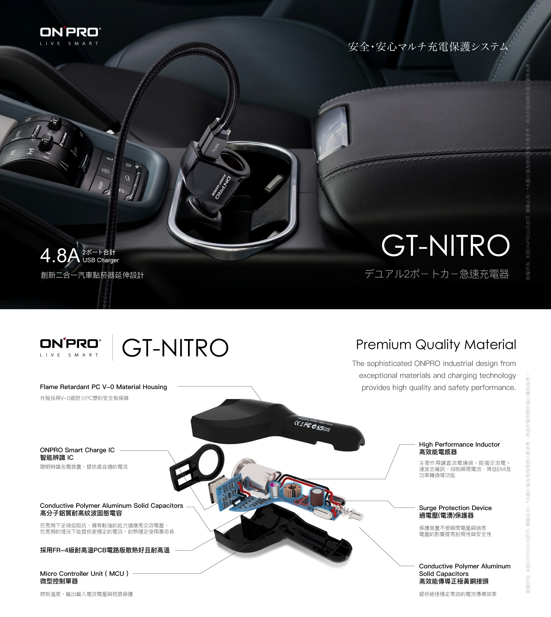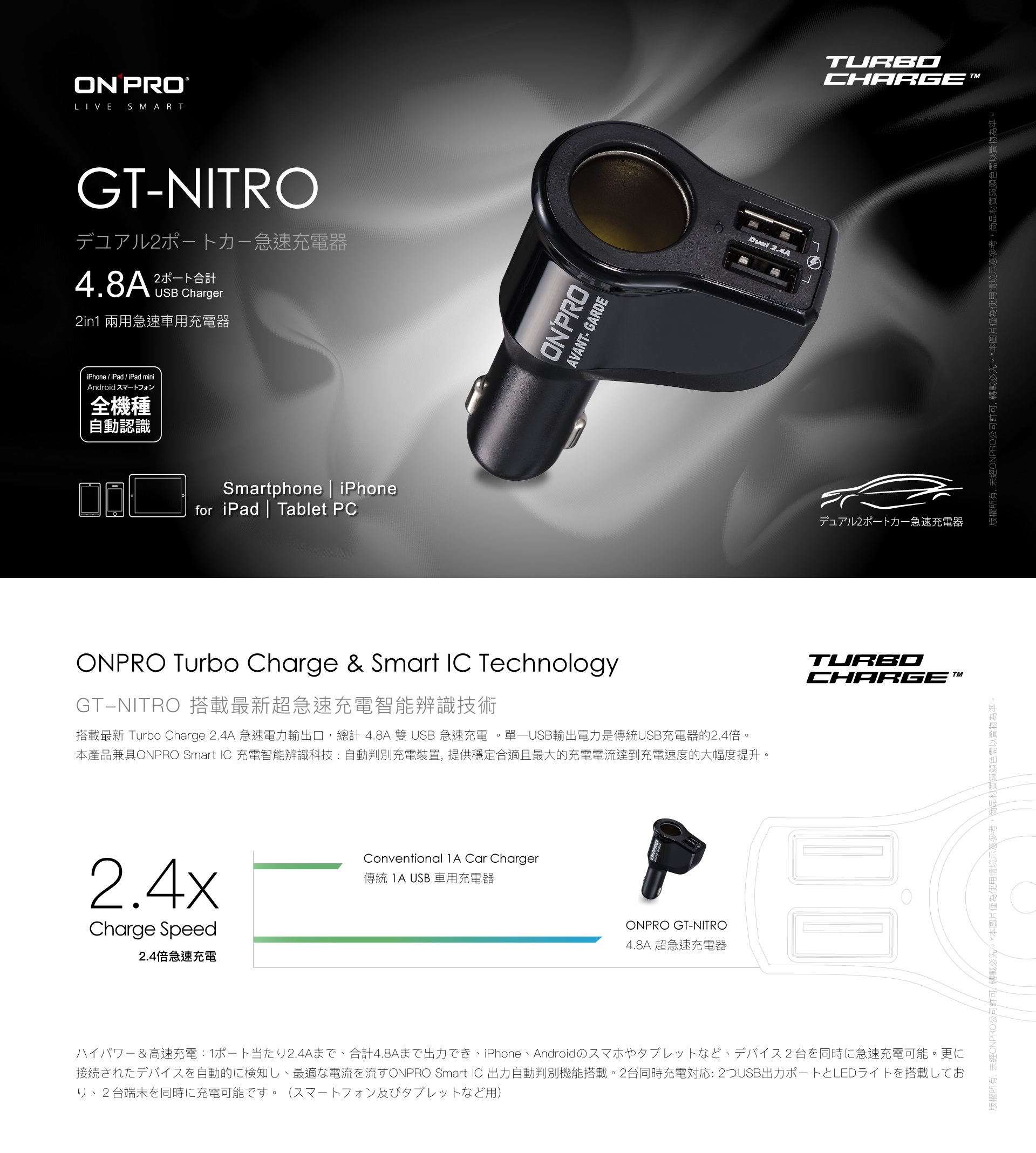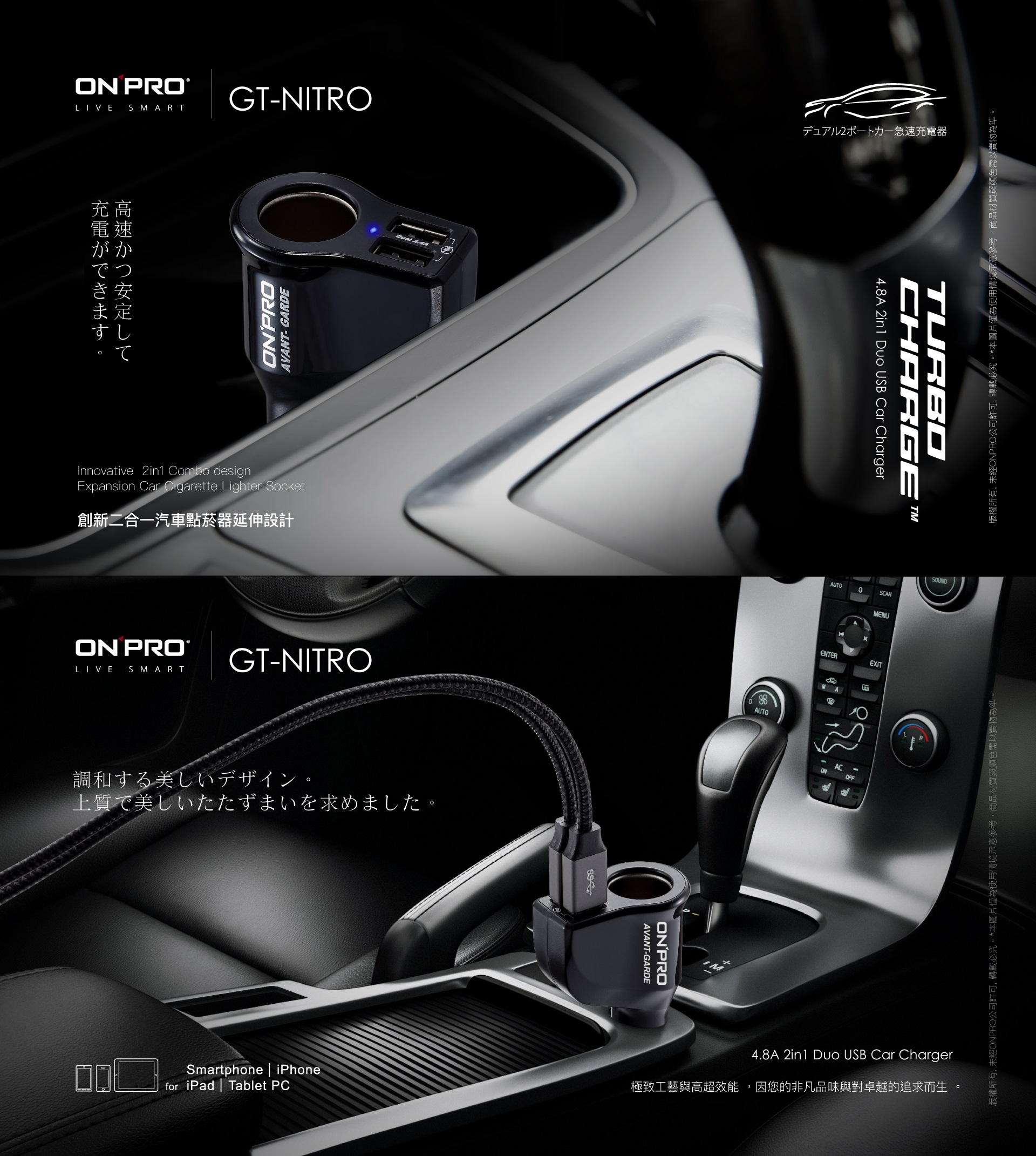 ONPRO 4.8A 雙USB 2用車用充電器 GT-NITRO