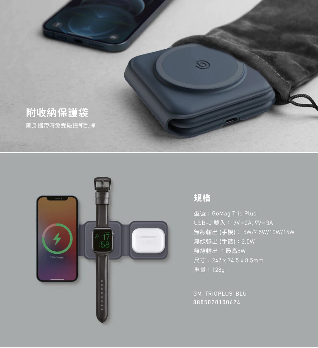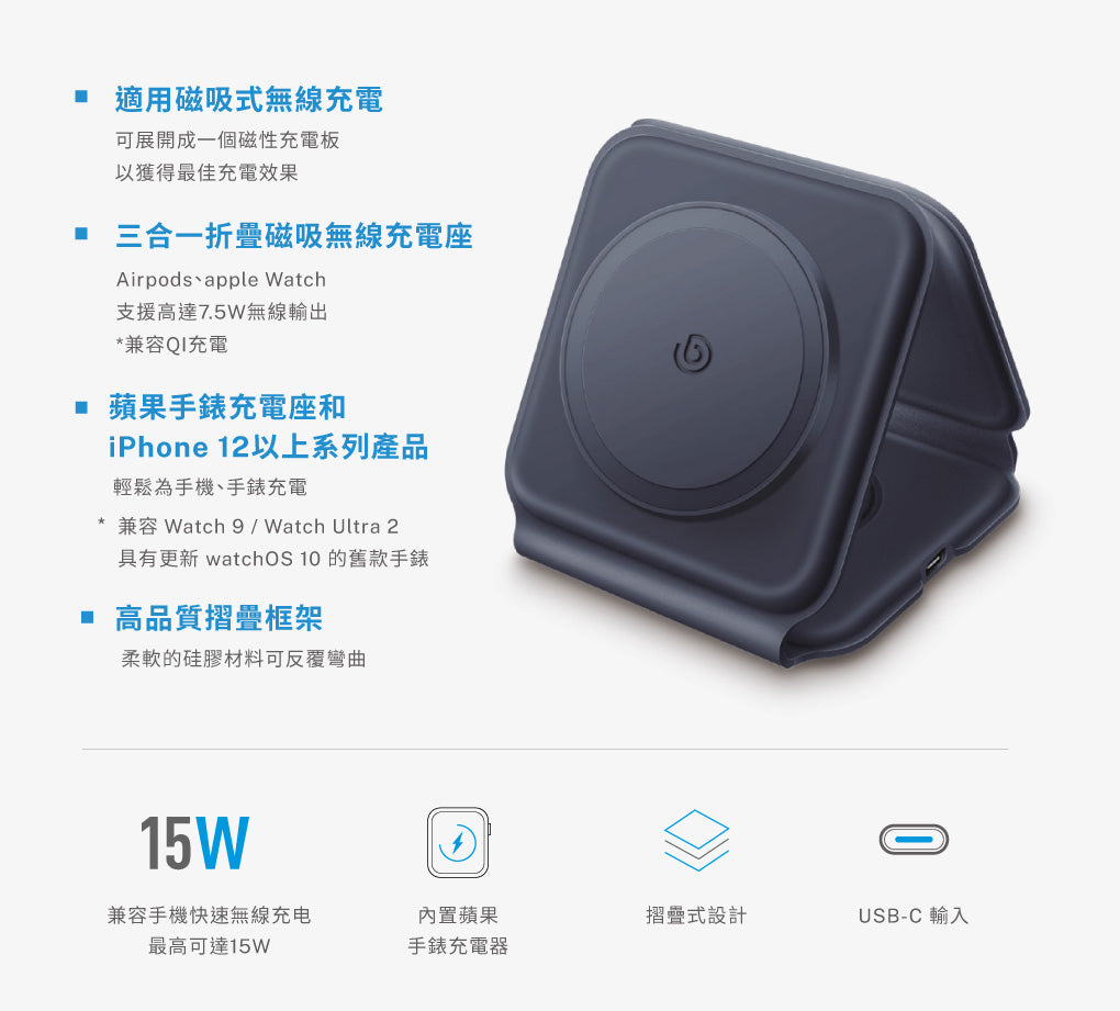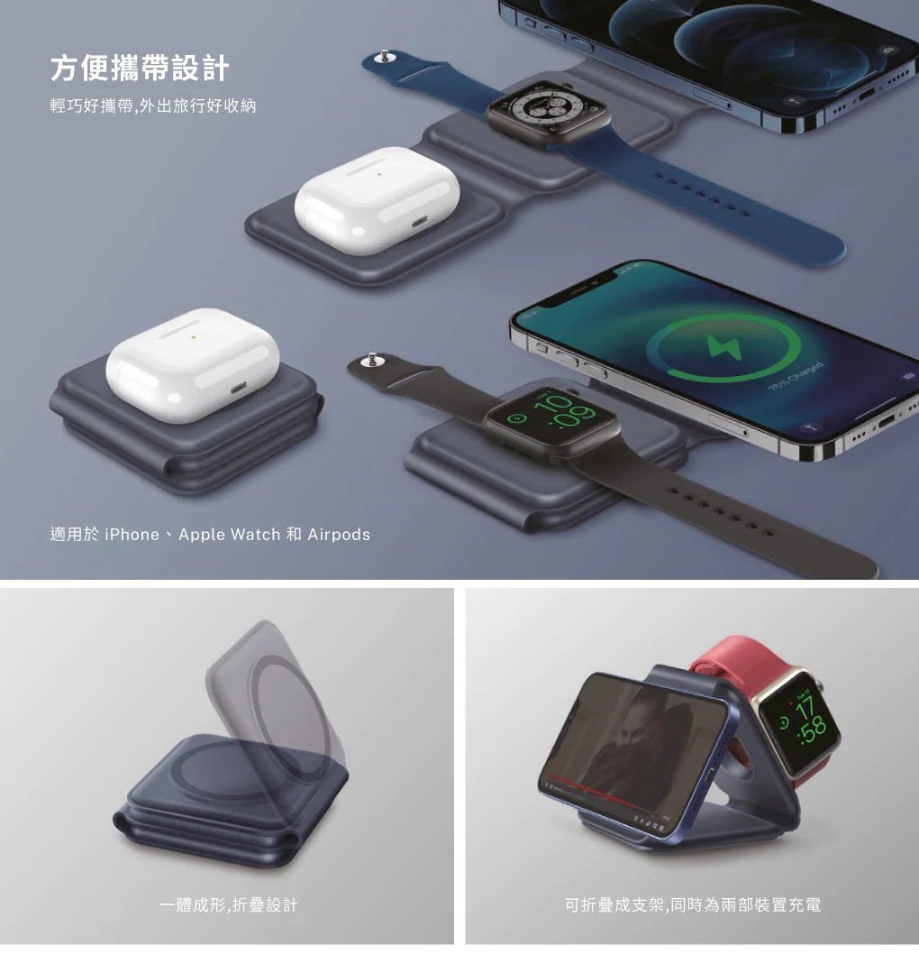 Mag Z 折疊式三合一旅行磁吸無線充電座
