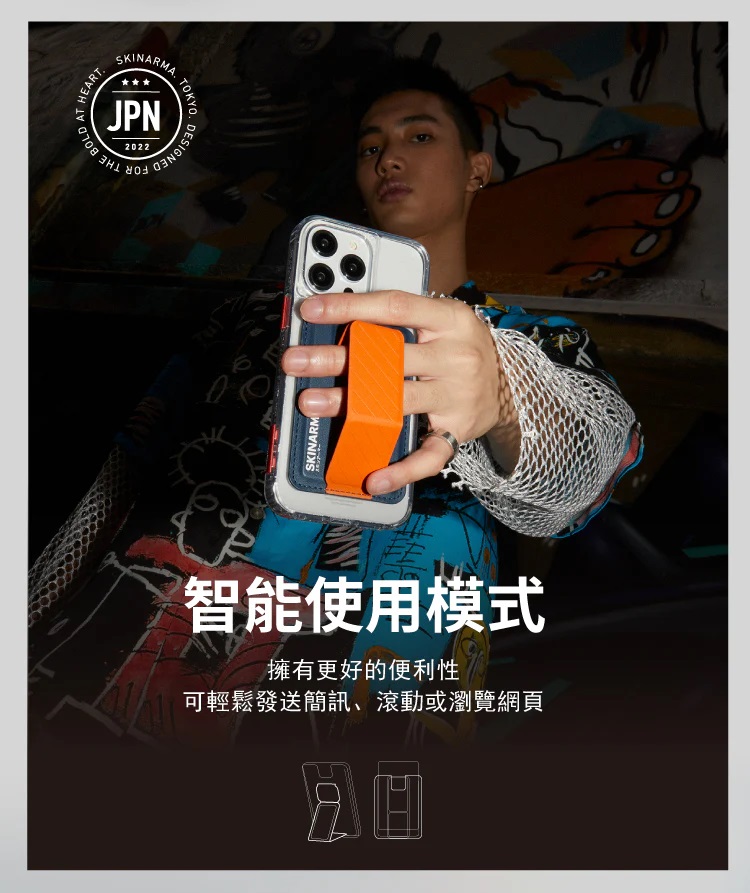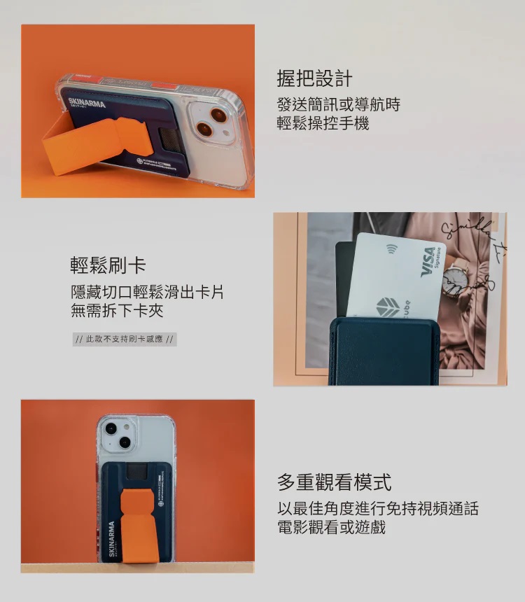 SINJIMORU M系列 彈出式握把卡片錢包手機殼 藍色 1個