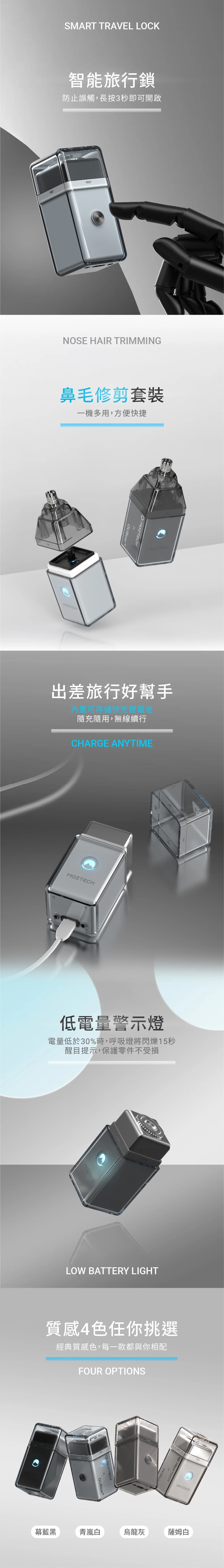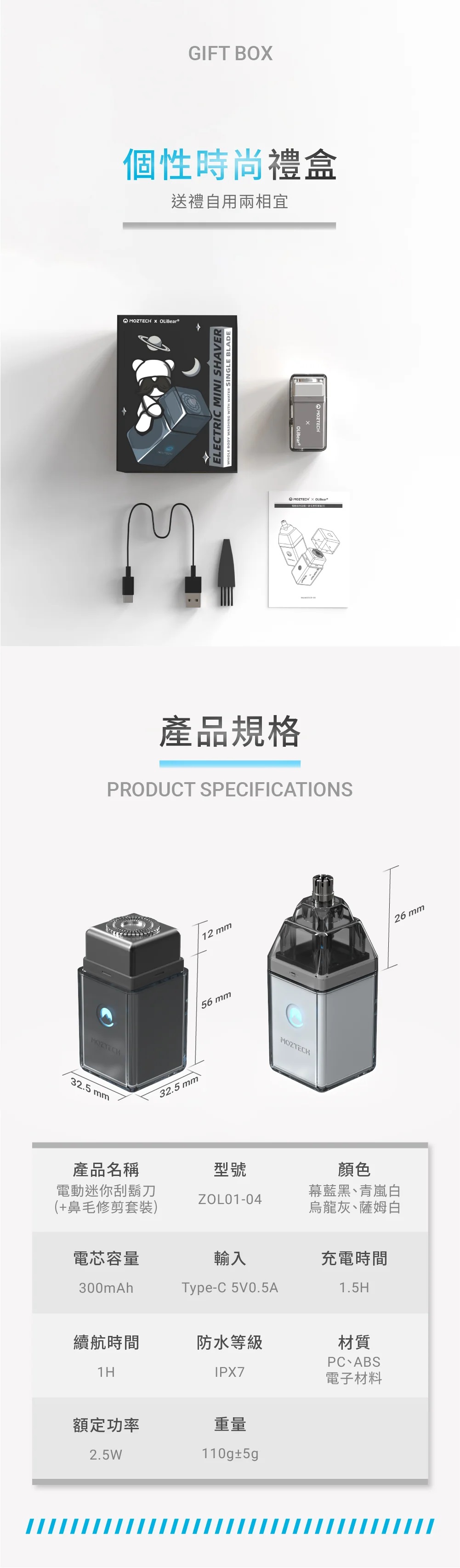 MOZTECH X OLIBEAR 電動迷你刮鬍刀(+鼻毛修剪套裝) - 慕藍黑 【現貨】