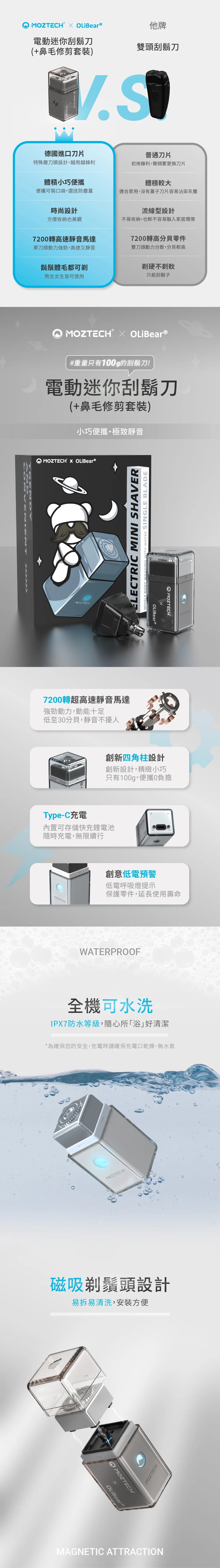 MOZTECH X OLIBEAR 電動迷你刮鬍刀(+鼻毛修剪套裝)