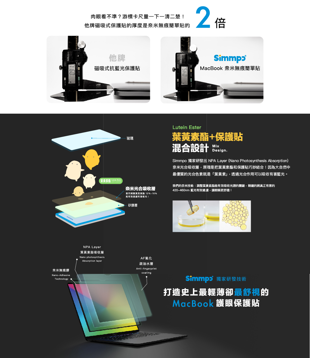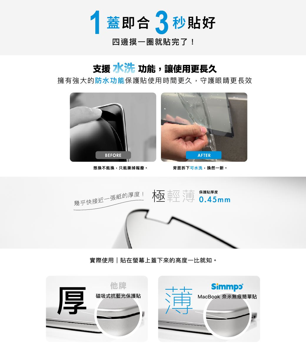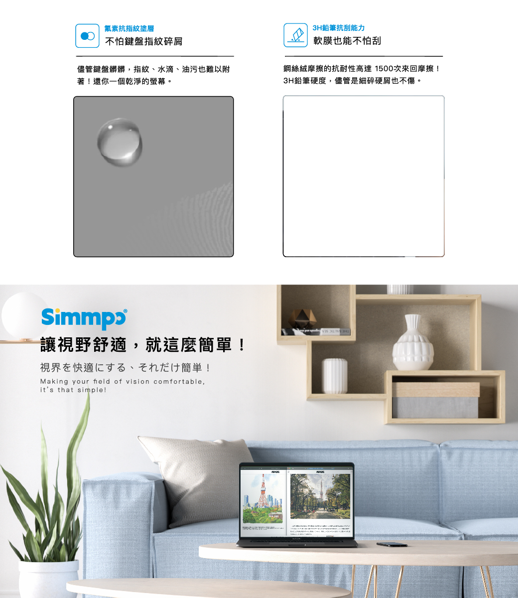 Simmpo MacBook 舒視霧面 抗藍光 奈米無痕簡單貼 霧面+抗藍光 適用 MacBook Pro 13.3吋