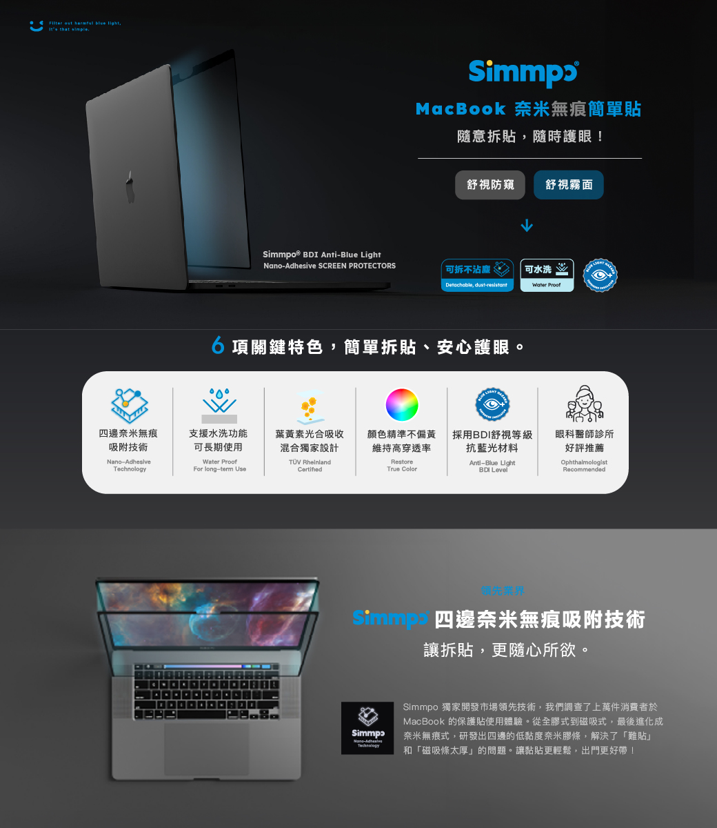 Simmpo MacBook 舒視防窺 抗藍光 奈米無痕簡單貼 防窺+抗藍光 適用 MacBook Pro 13.3吋