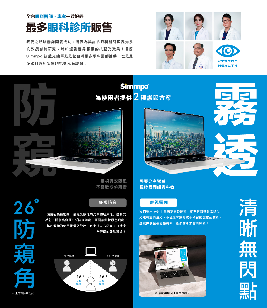 Simmpo MacBook 舒視防窺 抗藍光 奈米無痕簡單貼 防窺+抗藍光 適用 MacBook Pro 16.2吋